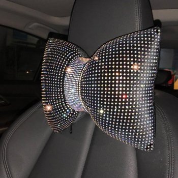 Sparkling Diamond Crystal Bowknot Car Neck Pillow